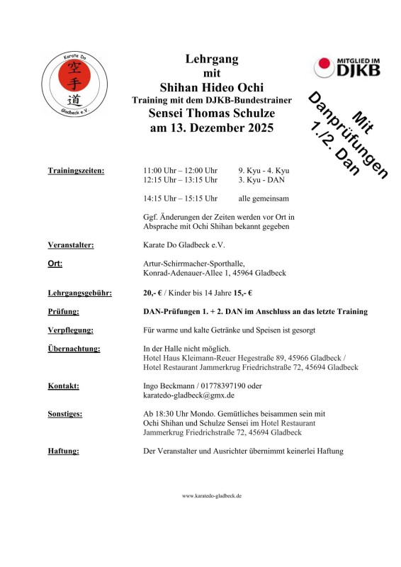 Karate Trainingsinfos